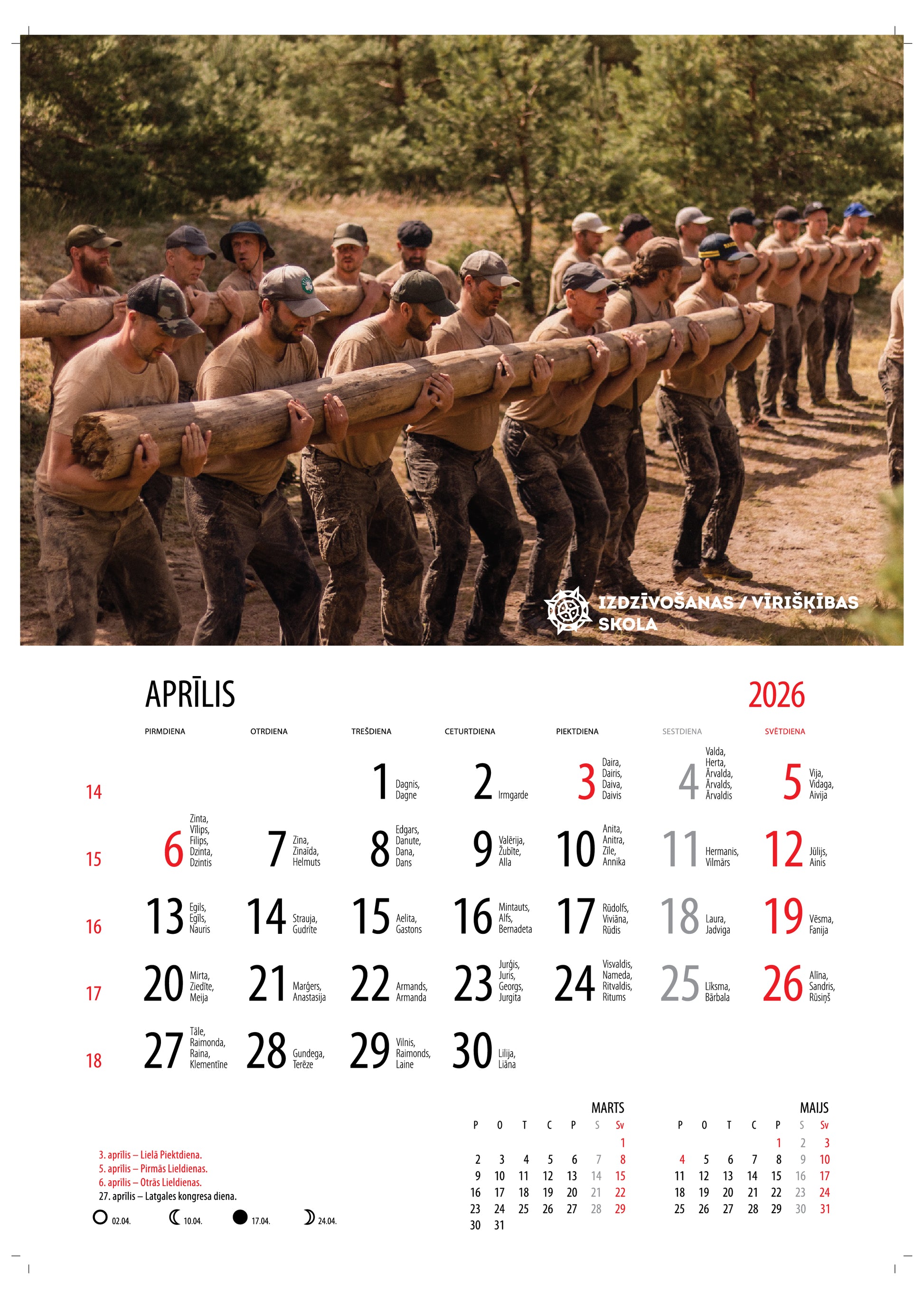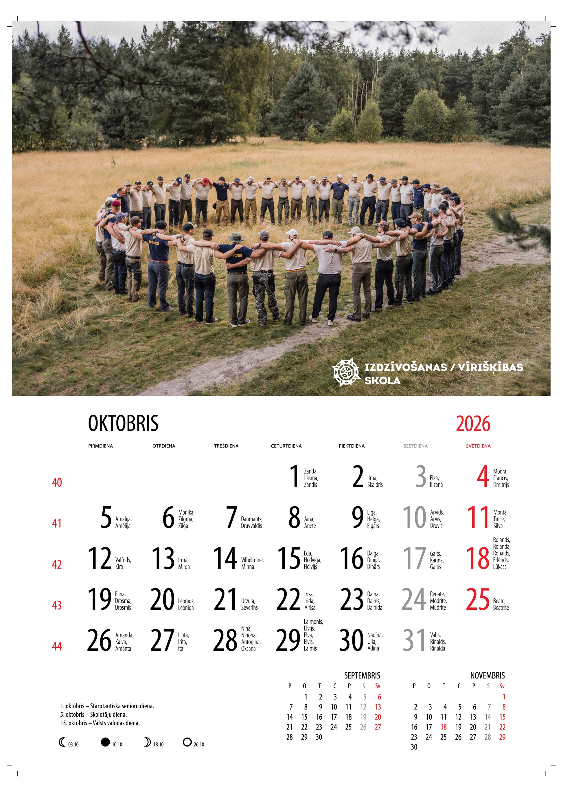 - Sienas kalendārs 2026. gadam. Izmērs 30x42 cm.